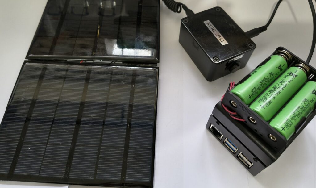 Additionally, squeezed inside of the case is a solar charge module which is obviously attached to the 3 18650 batteries on top and the large solar panel.